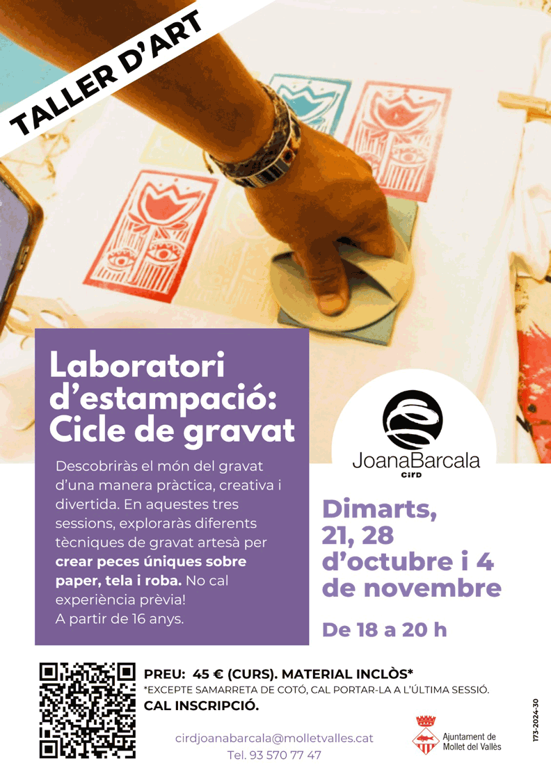 | Laboratori d'estampació al Joana Barcala | 1762275600 04/11/2025 - 18:00 / 20:00 |